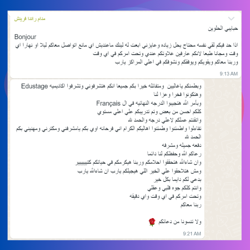 دراسات ماجستير باللغه الفرنسيه رئيس قسم اللغه الفرنسيه بإحدي مدارس فيوتشرز للغات Chef de département de Français + Assistant general supervisor in Futures Language School in Egypt